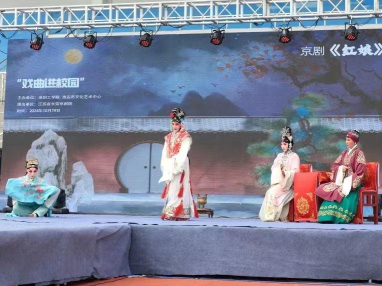 淮安文化中心为师生表演了昆曲《西游记·借扇》、淮海剧《借靴》、京剧《红娘》等经典剧目选段,将高雅艺术融入校园文化建设。