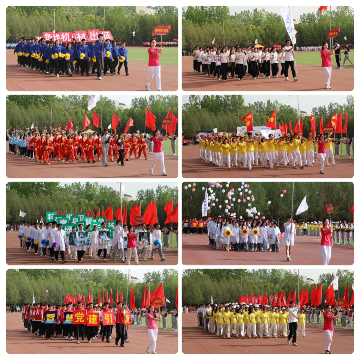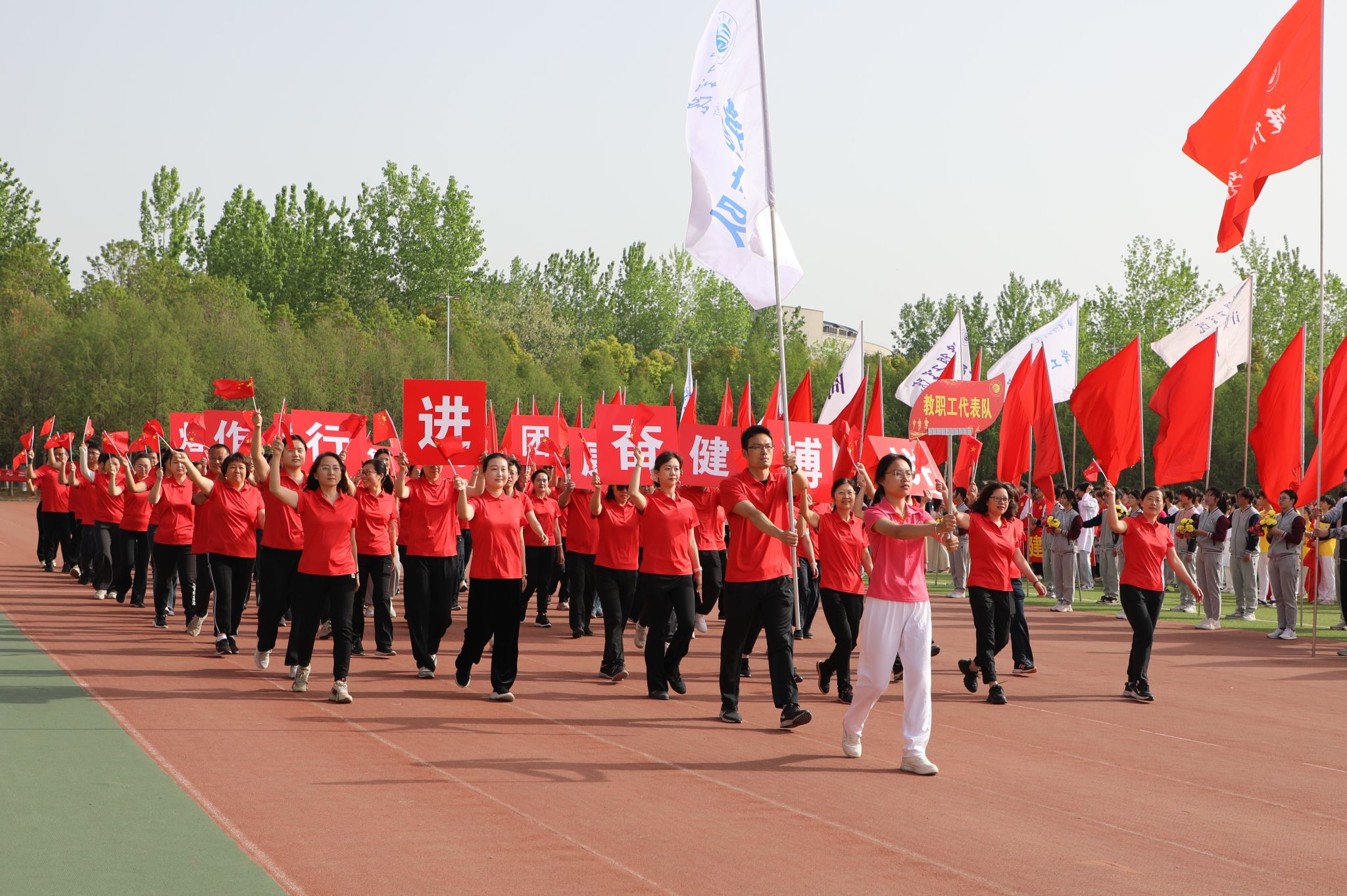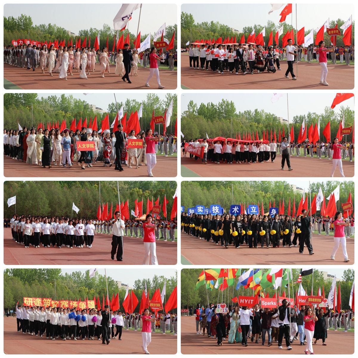 伴随着《运动员进行曲》的激昂旋律,在国旗方队的引领下,各二级学院学生方队和教职工方队迈着坚定有力的步伐,精神饱满、意气风发地依次入场。各二级学院将专业特色与时代精神融入入场式,方阵亮相富有创意、精彩纷呈,充分展现了我校师生的精神风貌和青春活力。